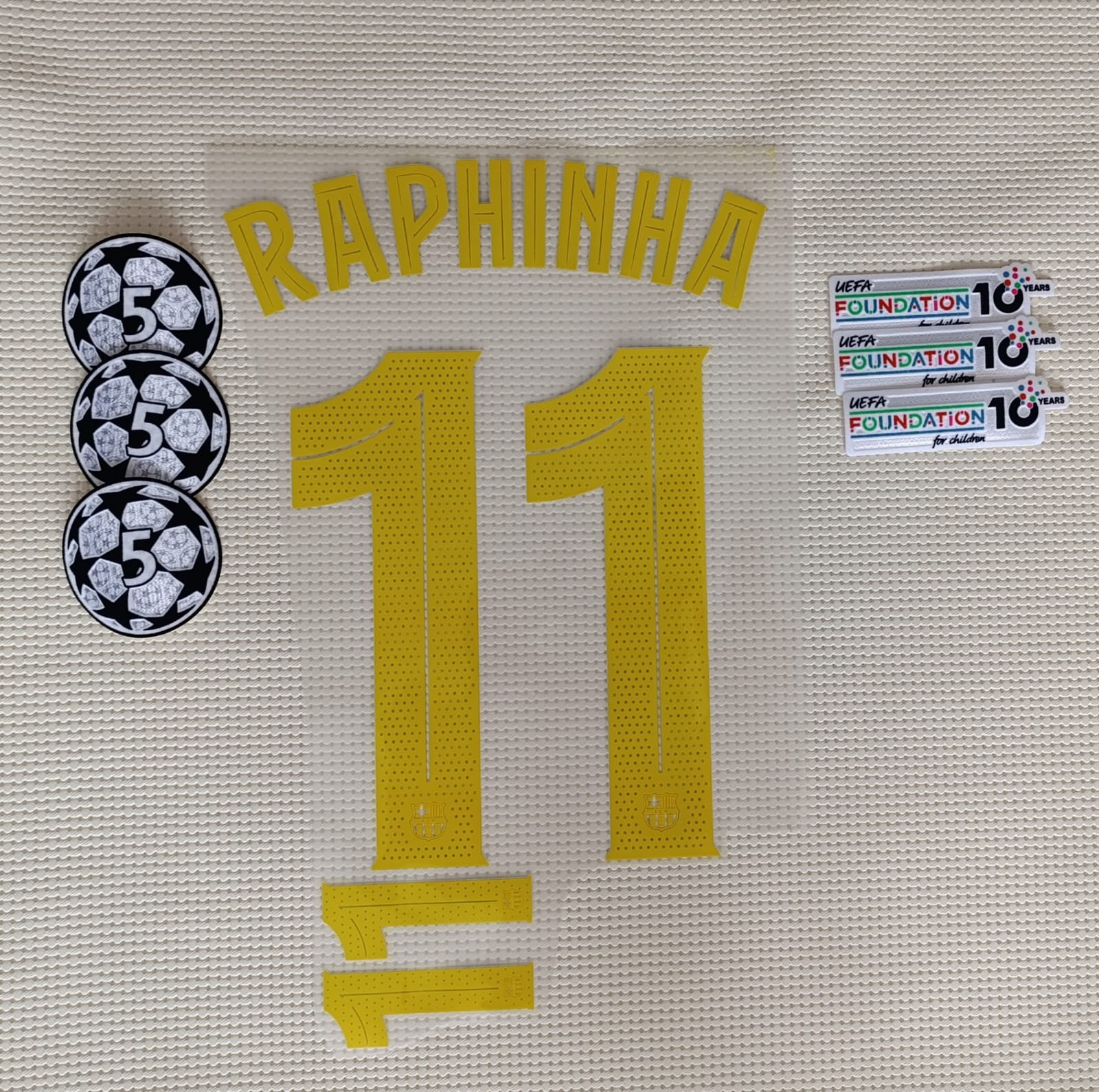 Set Barcelona Raphinha Local Kit 2025 UCL Dorsal+ 2 Parches cantidad