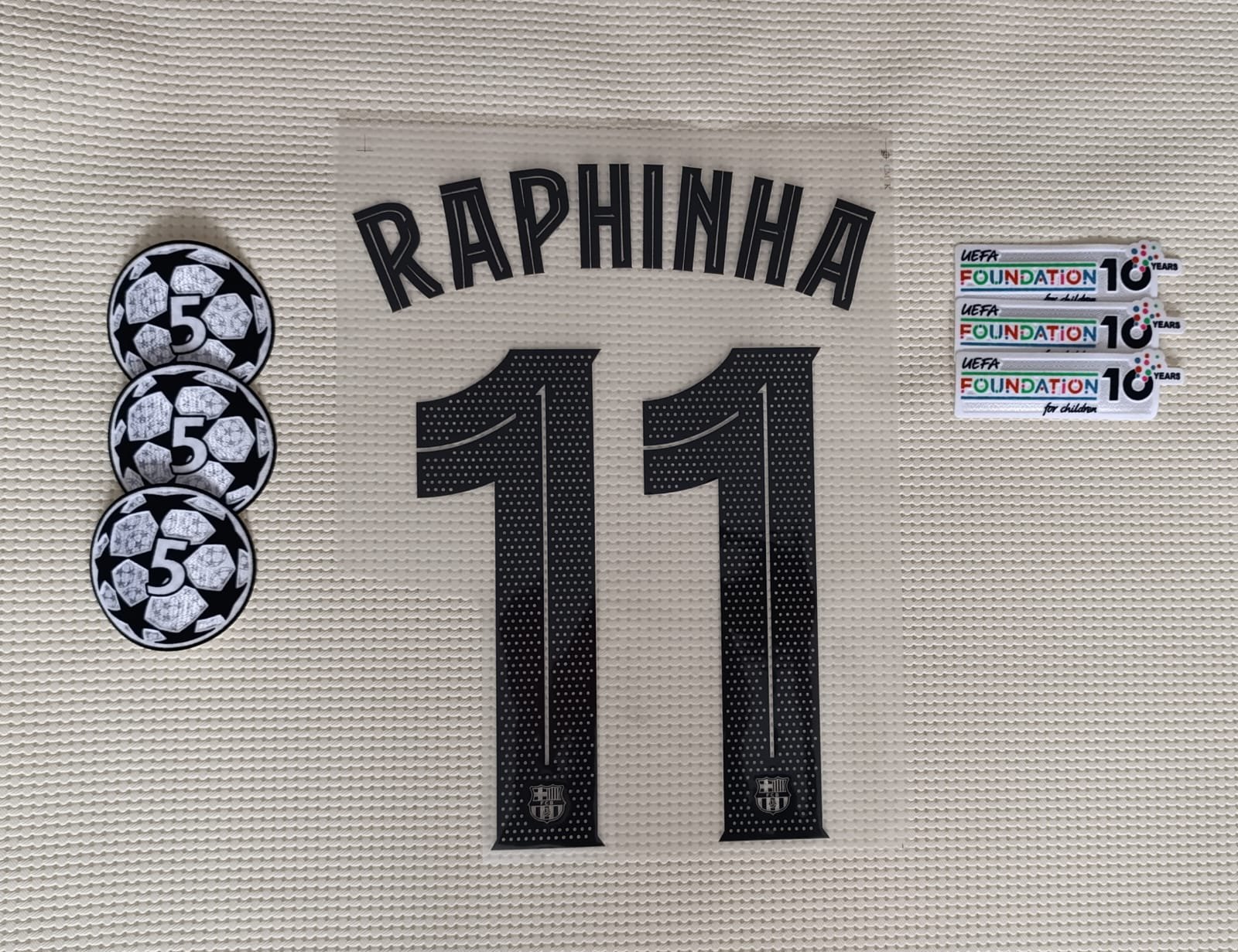 ref-36.1 Set Barcelona Raphinha Visitante Kit 2025 UCL Dorsal+ 2 Parches