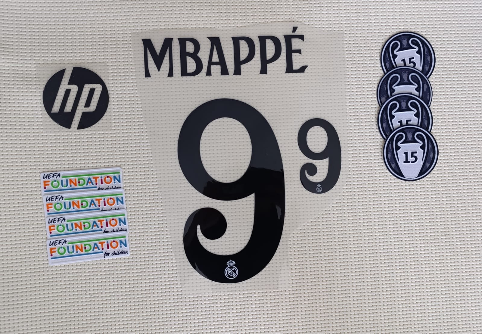 / Set Real Madrid Mbappe local UCL 2024 dorsal+3 parches