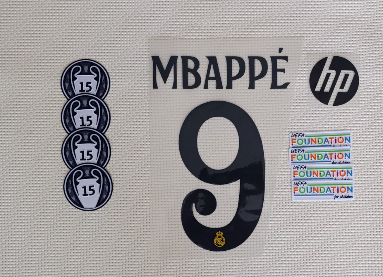 / Set Real Madrid Mbappe visitante UCL 2024 dorsal+3 parches